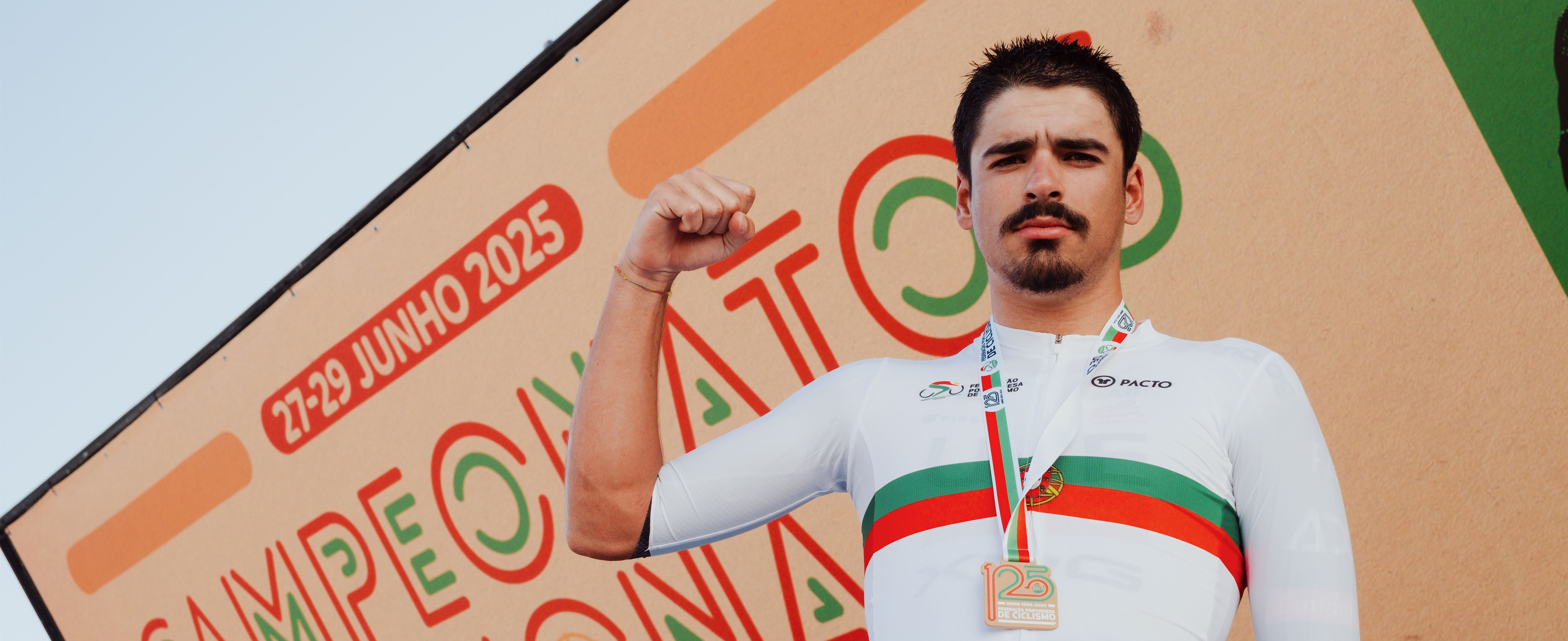 António Morgado (UAE Team Emirates – XRG) fez jus à alcunha de Bigode Voador e renovou o título do Campeão Nacional de Contrarrelógio, esta sexta-feira, em Alvaiázere, no primeiro de três dias de competição.