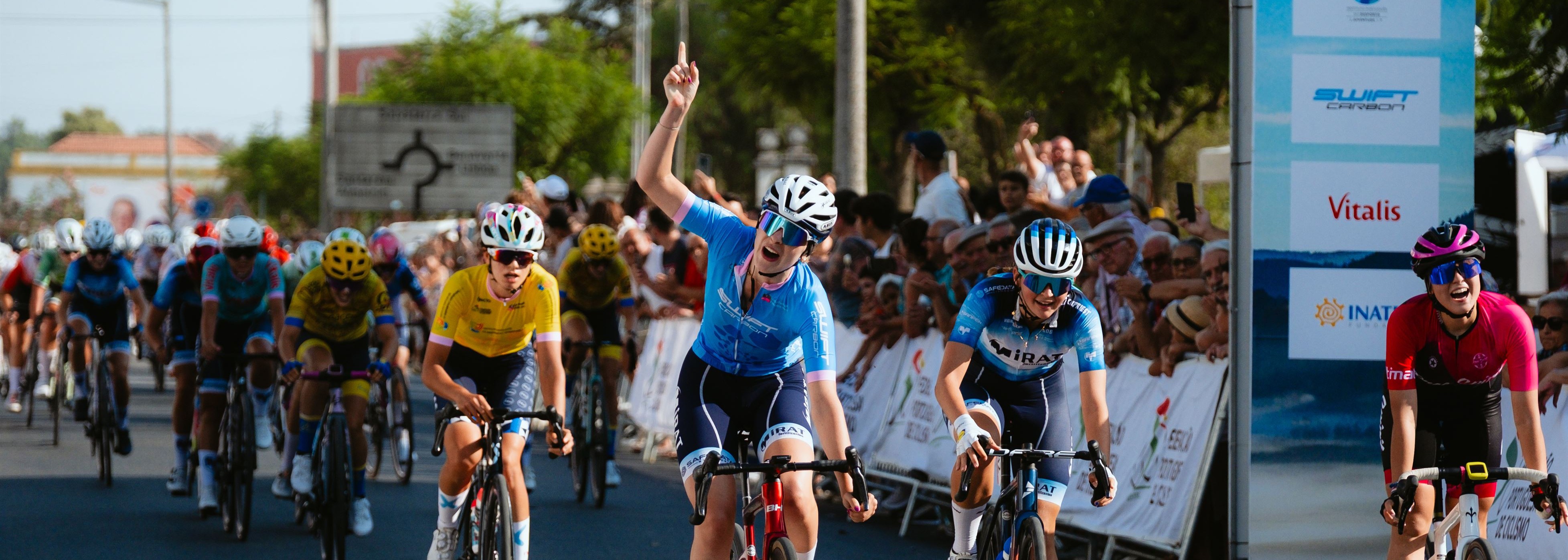 Vestida de azul, Laida Hierro (Mirat Fertilizantes Women Cycling Team) foi a mais rápida na segunda etapa da Volta a Portugal Feminina Sub-19, tendo liderado o sprint em Salvaterra de Magos.