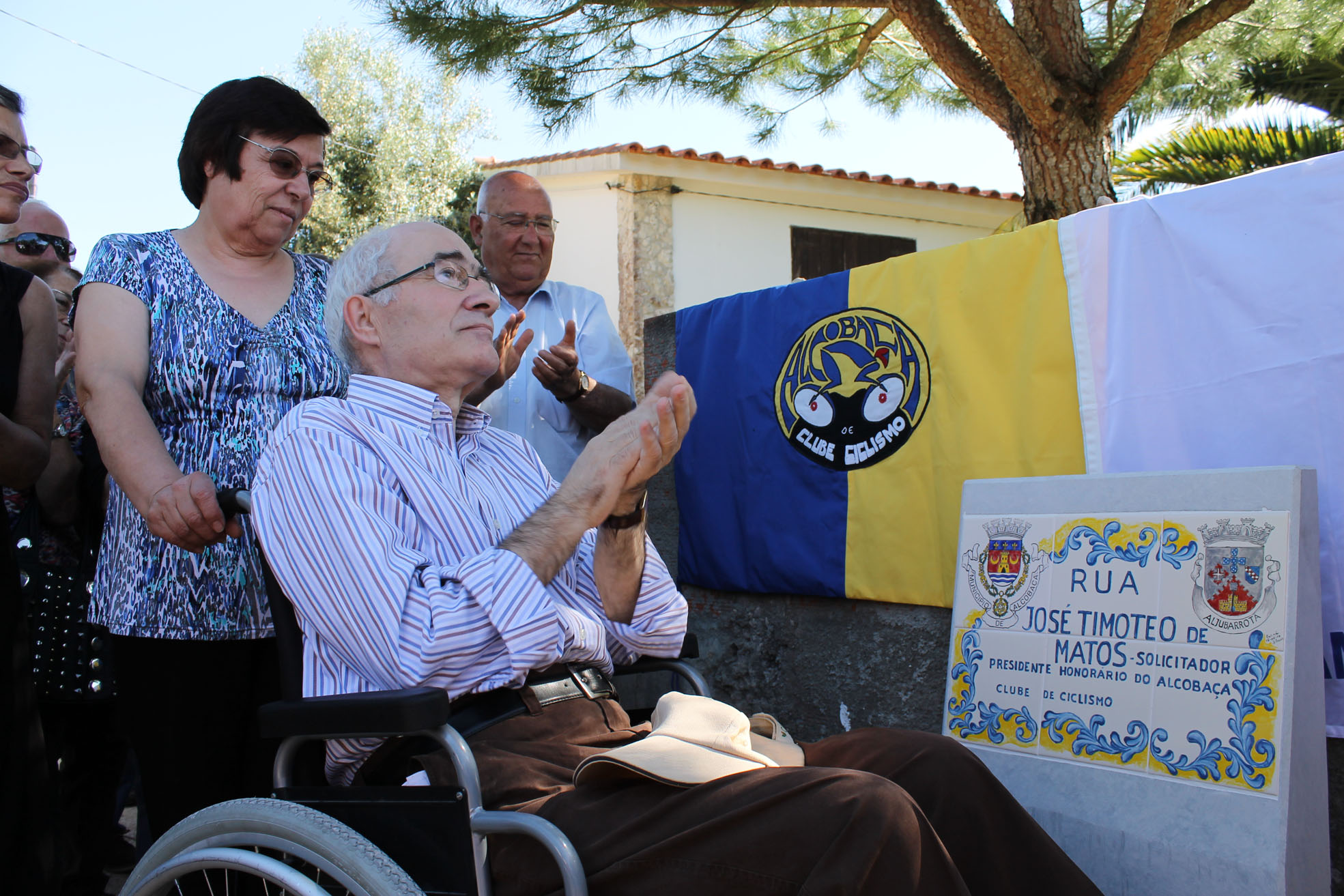 José Lourenço, presidente da Junta de Aljubarrota, fez questão de salientar o mérito de Timóteo de Matos, enquanto cidadão, profissional conceituado e enquanto dirigente do Clube de Ciclismo, razões pelas quais a Junta rapidamente aceitou o pedido que lhe foi feito. Timóteo de Matos, no seu estilo muito próprio e sempre bem humorado agradeceu a distinção de que era alvo, e recordou que doou cerca de quatro metros de largura, numa extensão de 500m para o alargamento desta rua onde mora e que ficou a ganhar por, entre outras, ter a vantagem “de ter menos dois mil metros quadrados de mato para roçar”.